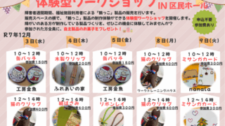 ふれあいグループは区役所入口の区民ホールにて展示・販売に参加します。お時間のある方は是非お越しください。
